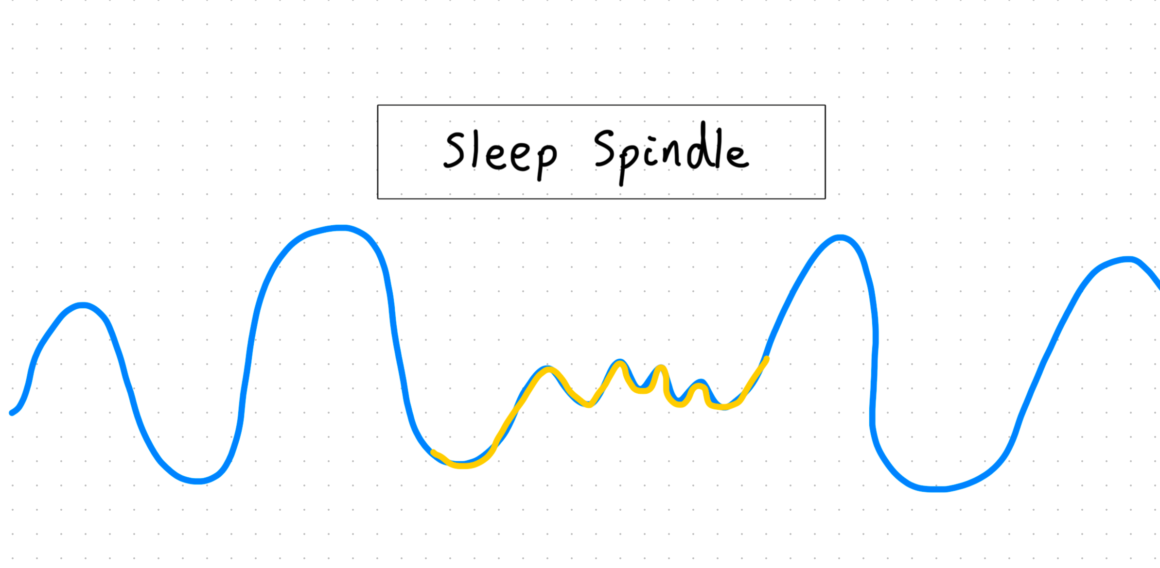 As you go deeper into non-REM sleep, neurons fire in slow, synchronised waves like a calm ocean rhythm. You get these things called sleep spindles during deep sleep. They appear when the brain is transferring memories from the Hippocampus to the Cortex for long-term memory storage.