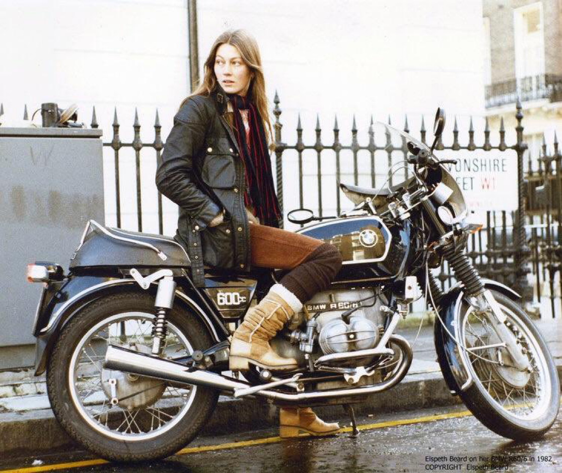 Elspeth Beard was the first English woman to circumnavigate the world on a motorcycle, traveling 35,000 miles on her BMW R60/6. The journey took her 2 years, from 1982-1984.